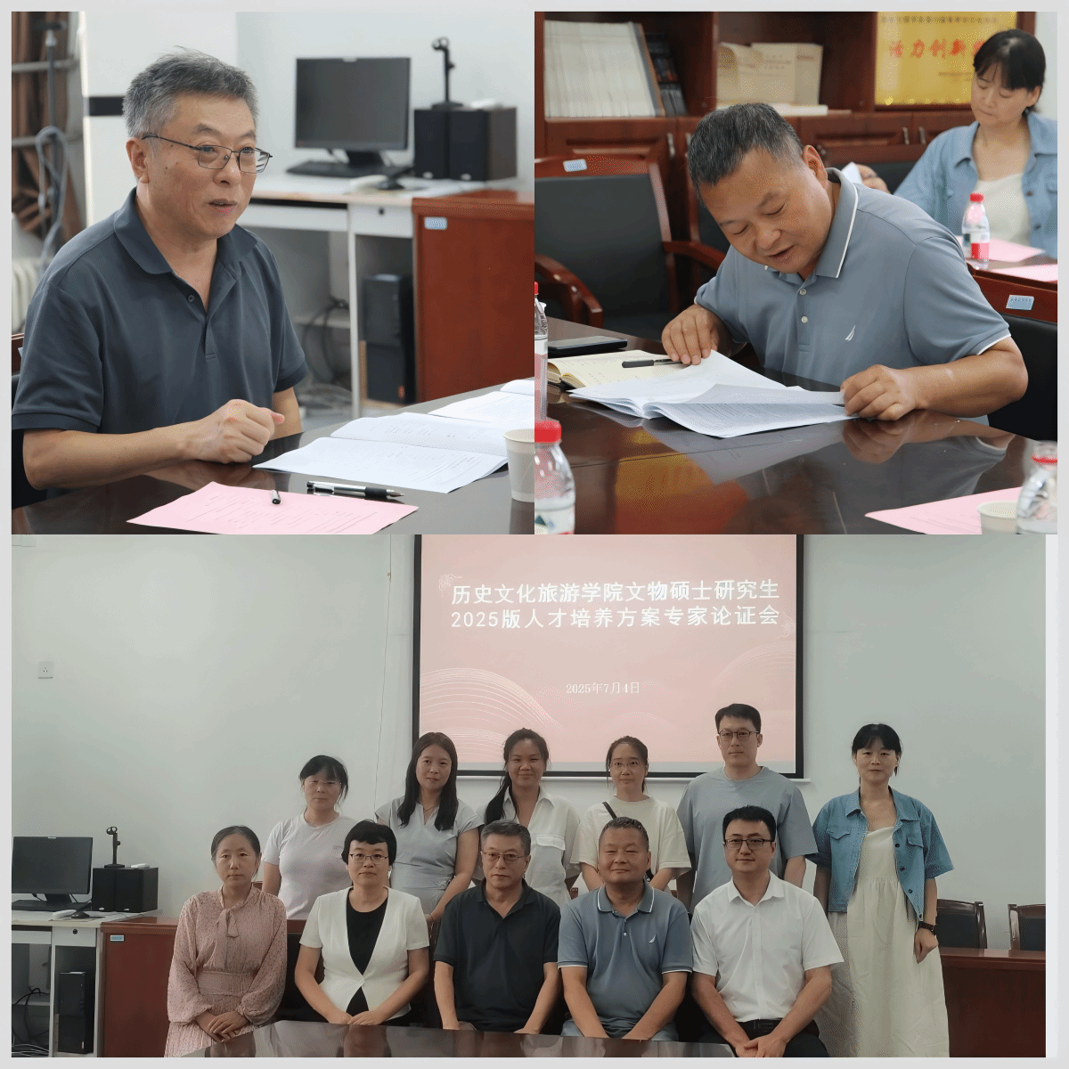 历史文化旅游学院于7月4日召开文物专业硕士人才培养方案论证会。会议特邀教育部历史学类专业教学指导委员会副主任委员、西北大学文化遗产学院陈洪海教授和陕西省考古研究院曹龙研究员参与论证,学校研究生院副院长李晶,学院院长崔林、副院长裴书研等人员出席会议。