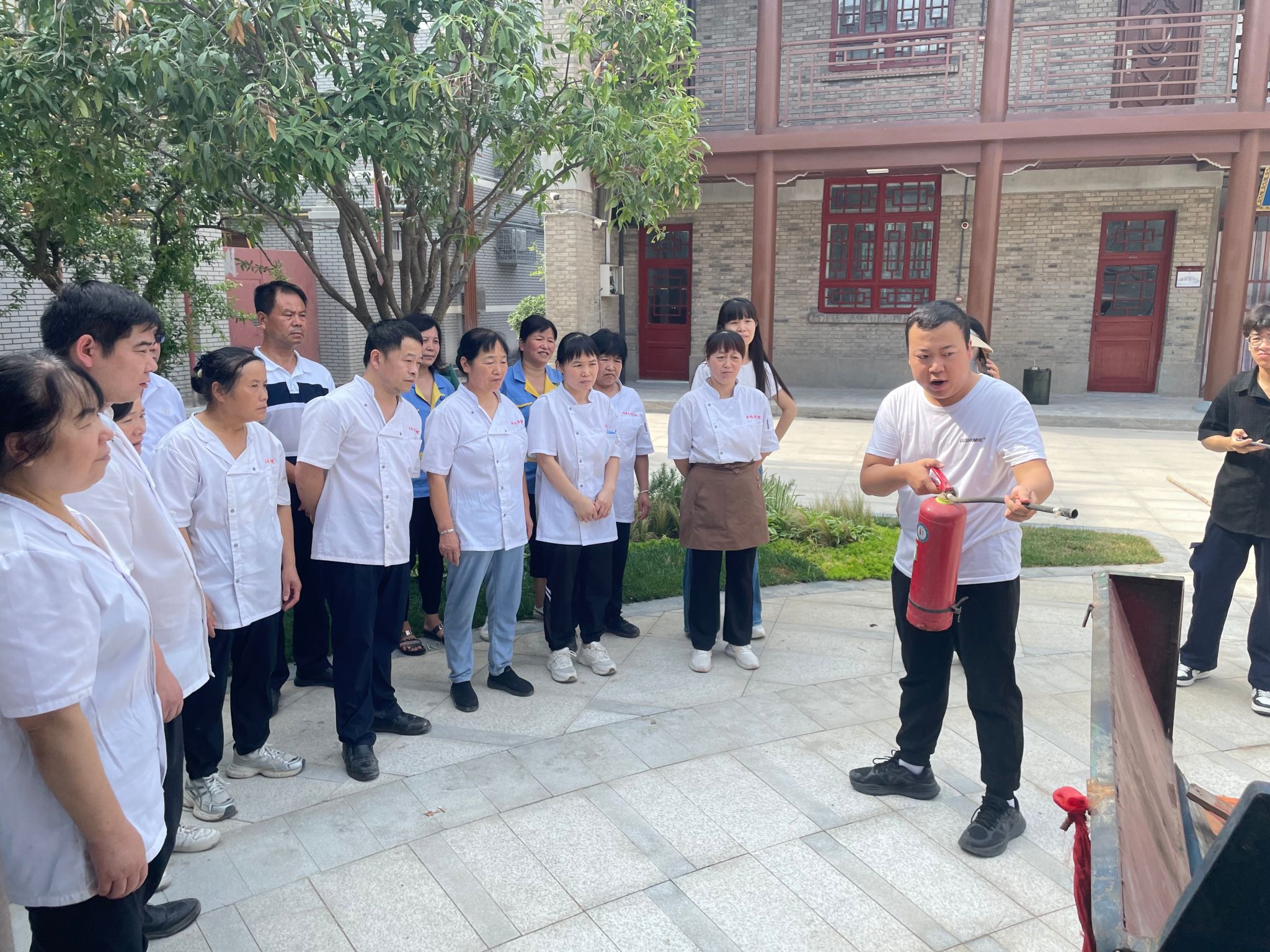 作为省级文物保护单位,西安九游老哥J9俱乐部官网学院关中书院校区承载着深厚的历史文化底蕴,其古建筑群的消防安全更是校园安全工作的重中之重。7月11日,为切实守护这处文化遗产与校园师生安全,后勤管理与保障处(基建处)在书院校区组织食堂、宿舍员工开展了一场针对性极强的消防演练,为文物保护与校园安全筑牢双重防线。