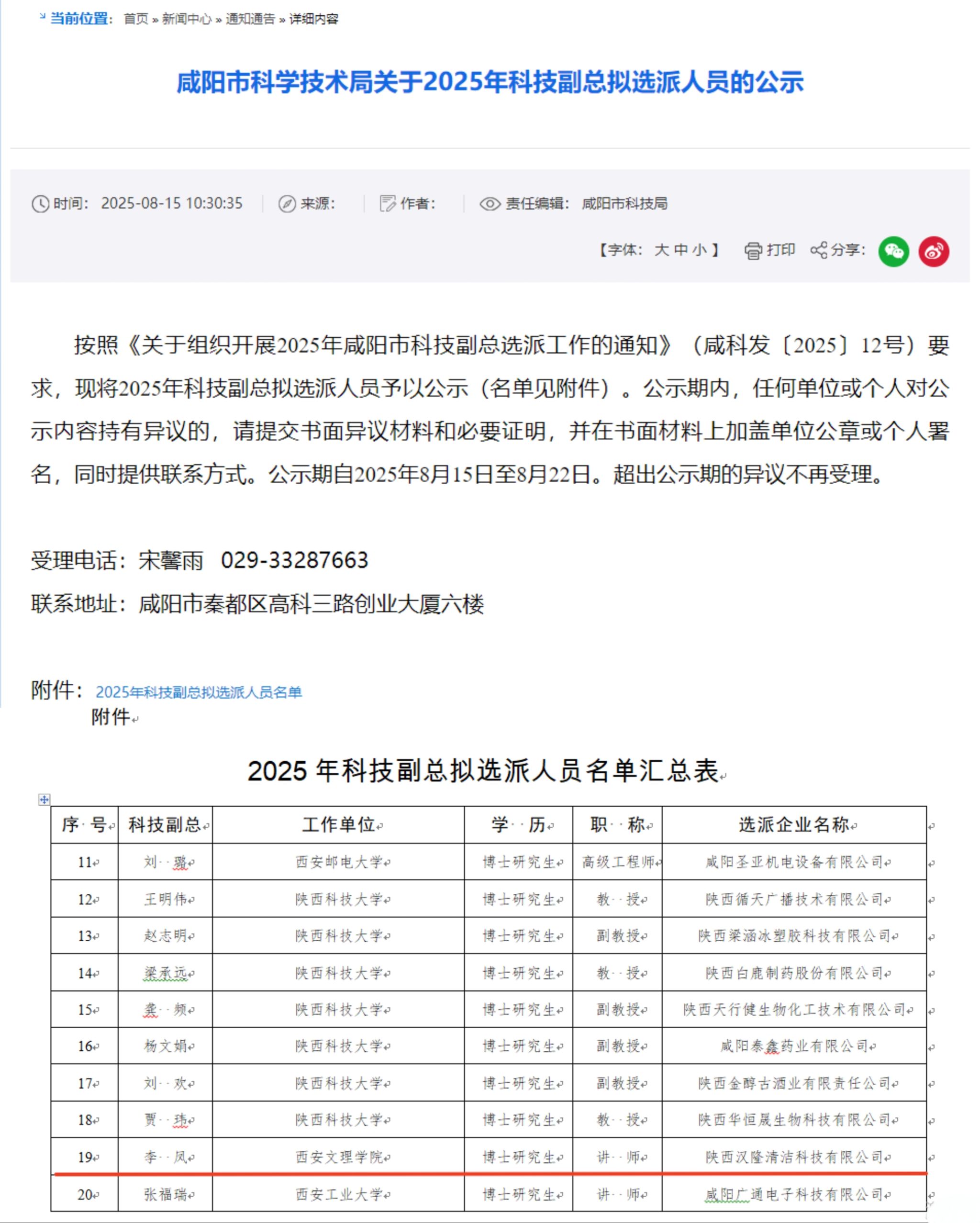 科技副总是近年来陕西省为推动高校、科研院所科技人才服务企业创新发展,强化高校科技人才培养的重要举措。此次入选,是对双方科技研发实力与创新潜力的高度认可。未来,双方将借此契机,开展紧密合作,加速科技成果转化,为服务地方经济发展贡献力量。