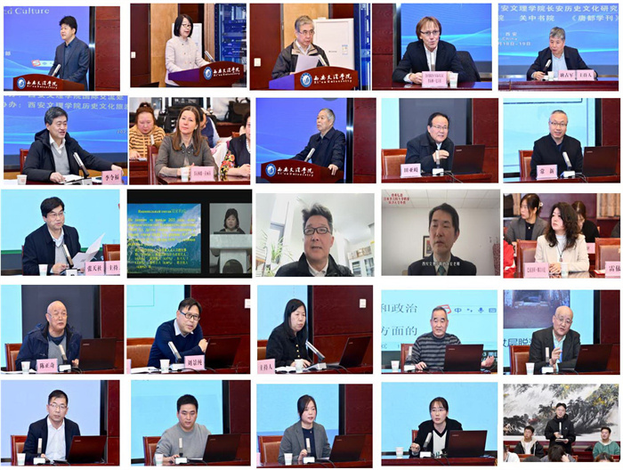 本届研讨会由省教育厅和我校主办,我校国际交流处、长安历史文化研究中心承办,历史文化旅游学院、关中书院、《唐都学刊》编辑部协办,会议采取线上线下结合方式进行。来自俄罗斯、日本、伊朗、吉尔吉斯坦等10多位外国学者,中国社会科学院、陕西省社科院、西北大学、陕西师范大学、陕西省考古研究院、陕西省历史博物馆等30余名专家学者,我校承办、协办单位和科研处、文学院、外国语学院等领导、代表以及历史学专业学生等共100余人参加会议。