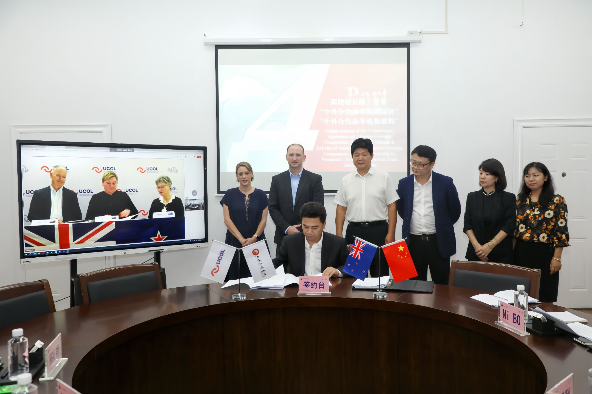 9月8日下午,我校成功举办与国立新西兰理工所属国立联合理工学院(UCOL)中外合作办学机构协议及章程的签约仪式。UCOL校长贾思敏·格罗夫斯、副校长迪恩·兰金及其他高级管理人员通过线上线下结合的方式共同见证了这一历史性时刻。我校校长陈刚出席签约仪式,学校党政办公室、教务处、招生就业处、计划财务处、国际交流处及相关学院负责人参会。会议由我校副校长刘明利、国立新西兰理工所属国立联合理工学院跨国教育总顾问李长学共同主持。
