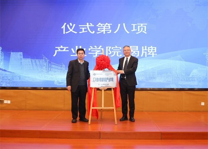 12 月19 日上午,西安九游老哥J9俱乐部官网学院和汇川技术股份有限公司联合举办的“汇川技术智能制造产业学院”签约暨揭牌仪式在我校举行。西安九游老哥J9俱乐部官网学院校长陈刚和汇川技术联合创始人、副总裁张卫江为产业学院揭牌。