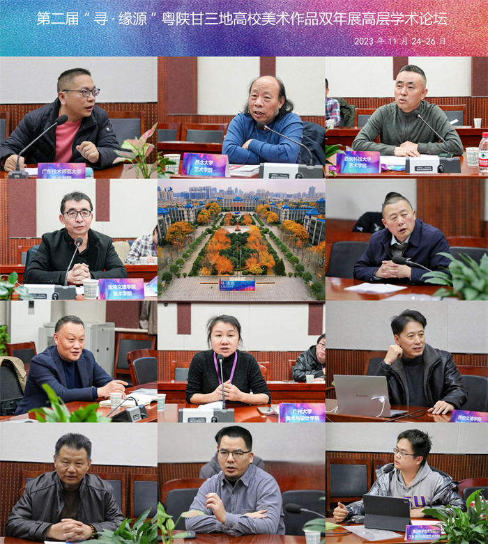 11月25日上午,“第二届寻·缘源——粤、陕、甘三地十一高校美术作品双年展暨学术研讨会”在我校举行。