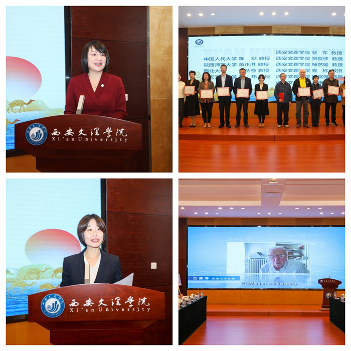 仪式上,全体参会人员观看了西安市“一带一路”十年成就展,宣布了“一带一路”西安实践研究院机构设置和人员构成,研究院常务副院长邬连东、鲍锋为10名校内外专家学者代表颁发聘书。陈默教授和莱顿大学亚洲研究院国际学院范登伯格教授作为专家学者代表发言。