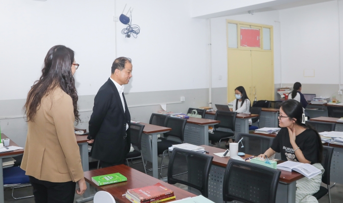 王育选听取了相关部门关于学校屋顶改造、宿舍改造、水电设施提升等工作的汇报,要求相关职能部门强化责任担当,认真落实学校各项安全管理制度;要加强安全知识教育和应急处置培训,坚决杜绝安全责任事故的发生,进一步提升学校应急能力和安全管理工作水平,着力补齐短板,消除安全隐患,切实把安全稳定的职责与任务落实到位。