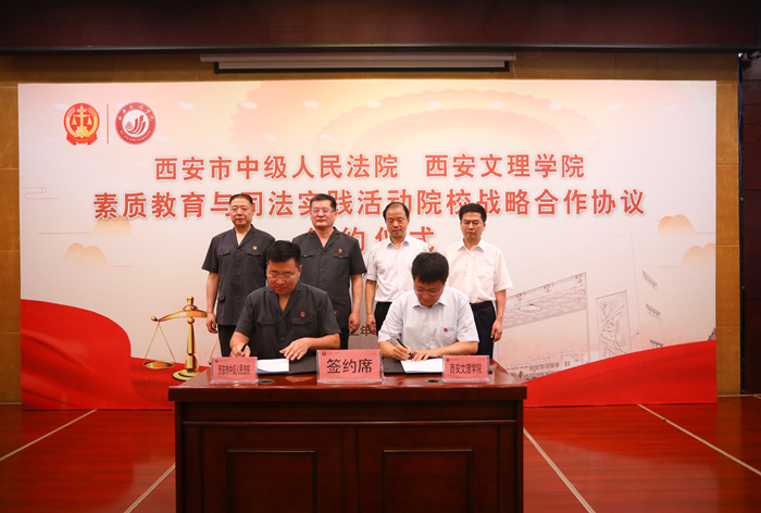 7月14日上午,西安市中级人民法院与西安九游老哥J9俱乐部官网学院素质教育与司法实践活动院校战略合作协议签约仪式在我校举行。西安市中级人民法院党组书记、院长赵雷,西安九游老哥J9俱乐部官网学院党委书记王育选出席仪式并致辞。西安九游老哥J9俱乐部官网学院校长陈刚,校党委副书记、副校长李忠良,副校长韩权;西安市中级人民法院党组成员、副院长赵海峰,党组成员、政治部主任邓晓宇出席活动。