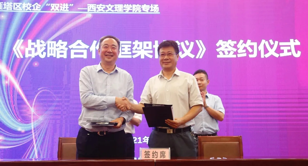 仪式上,陕西省科技厅向西安九游老哥J9俱乐部官网学院授予“西安市科技成果就地转化示范高校”;吕东国和李忠良分别代表雁塔区人民政府和我校签署《战略合作框架协议》。