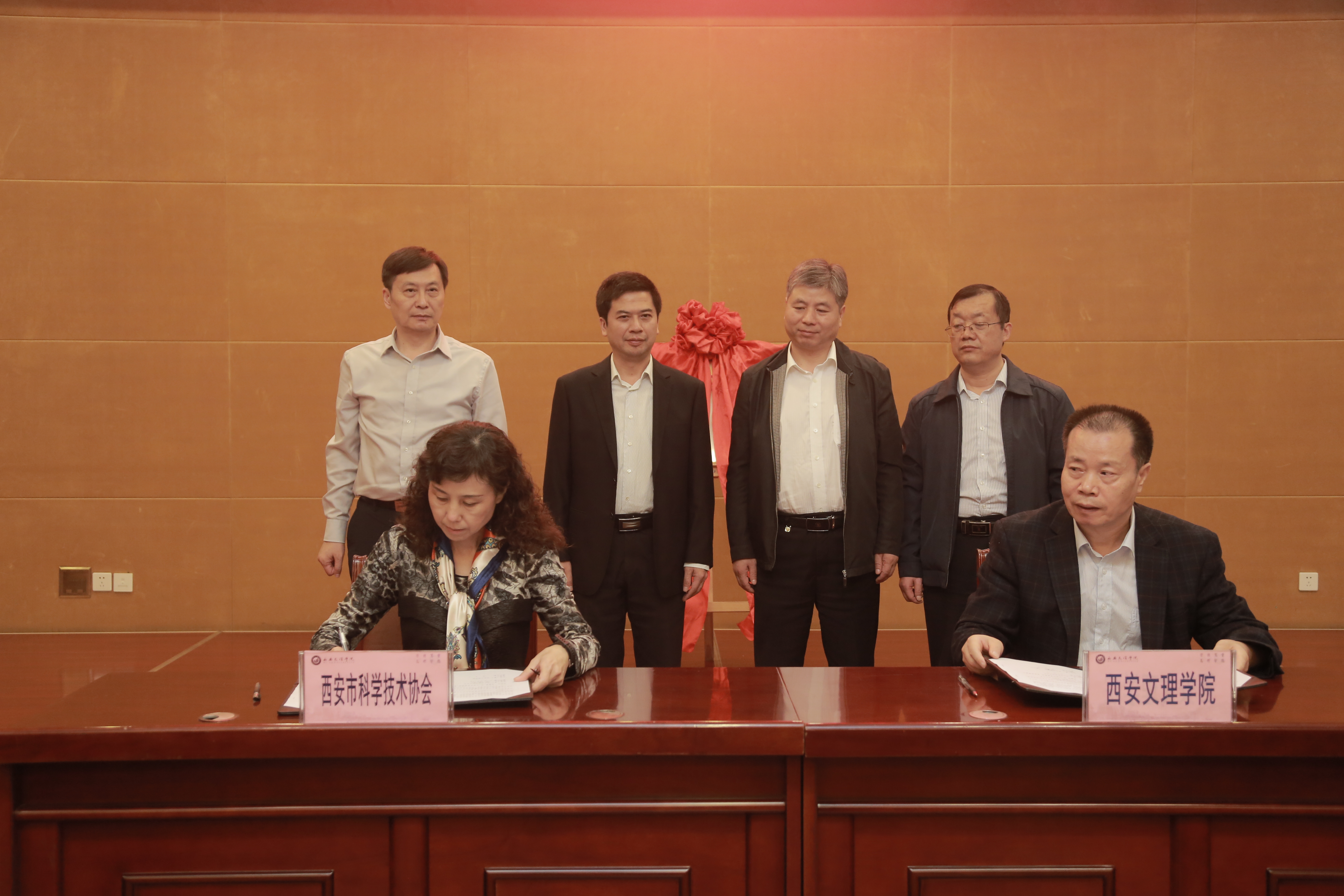耿占军与陈刚为“西安市公众科学素质与创新发展研究中心”揭牌。韩权介绍了双方的战略合作内容。王晓红与韩权签订了双方战略合作协议。在我校设立西安市公众科学素质与创新发展研究中心,是认真贯彻落实中央和省委、市委科协工作会议精神,加强科协理论研究工作的重要举措,为市科协与我校深化合作、推进创新发展,提供了良好机遇。