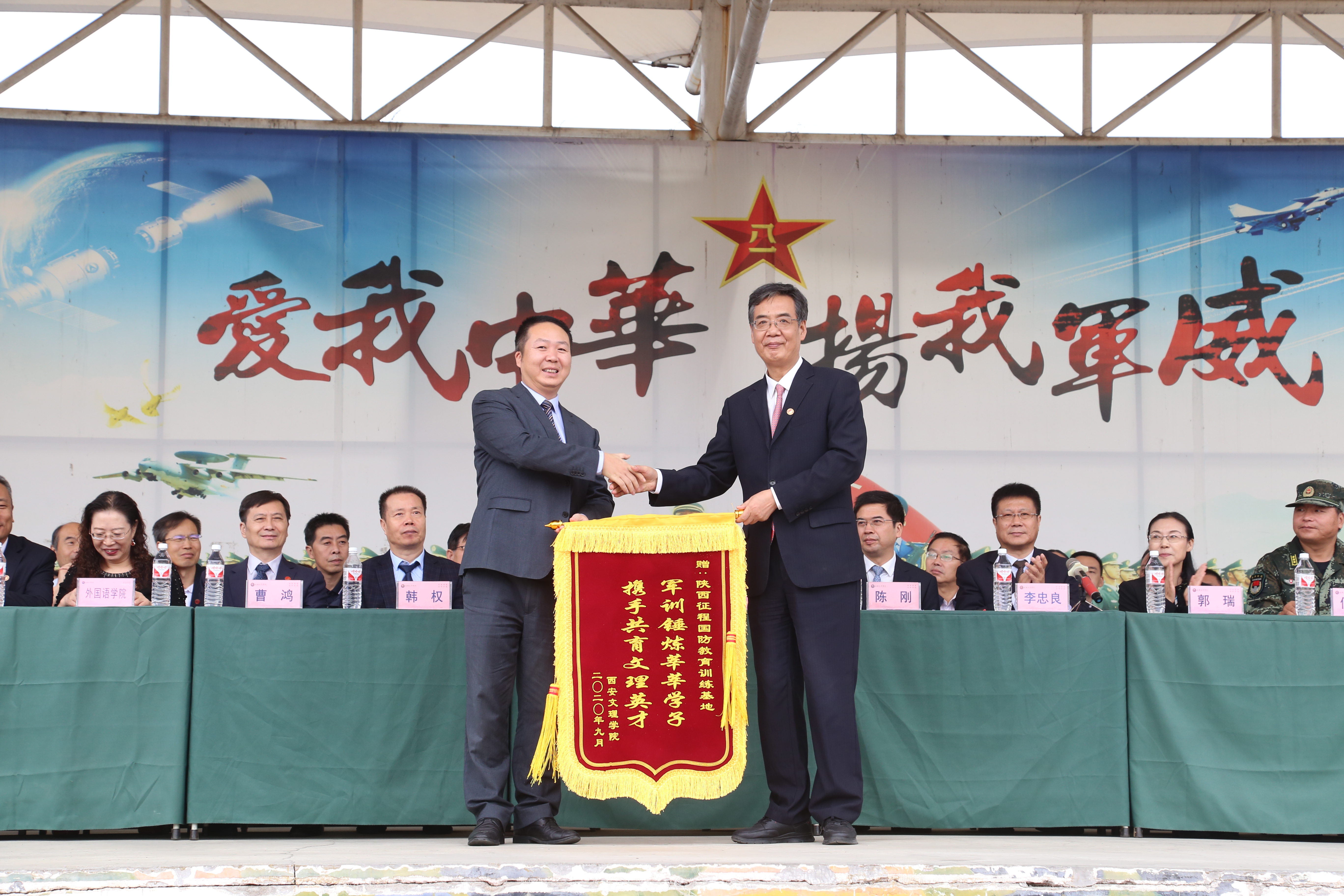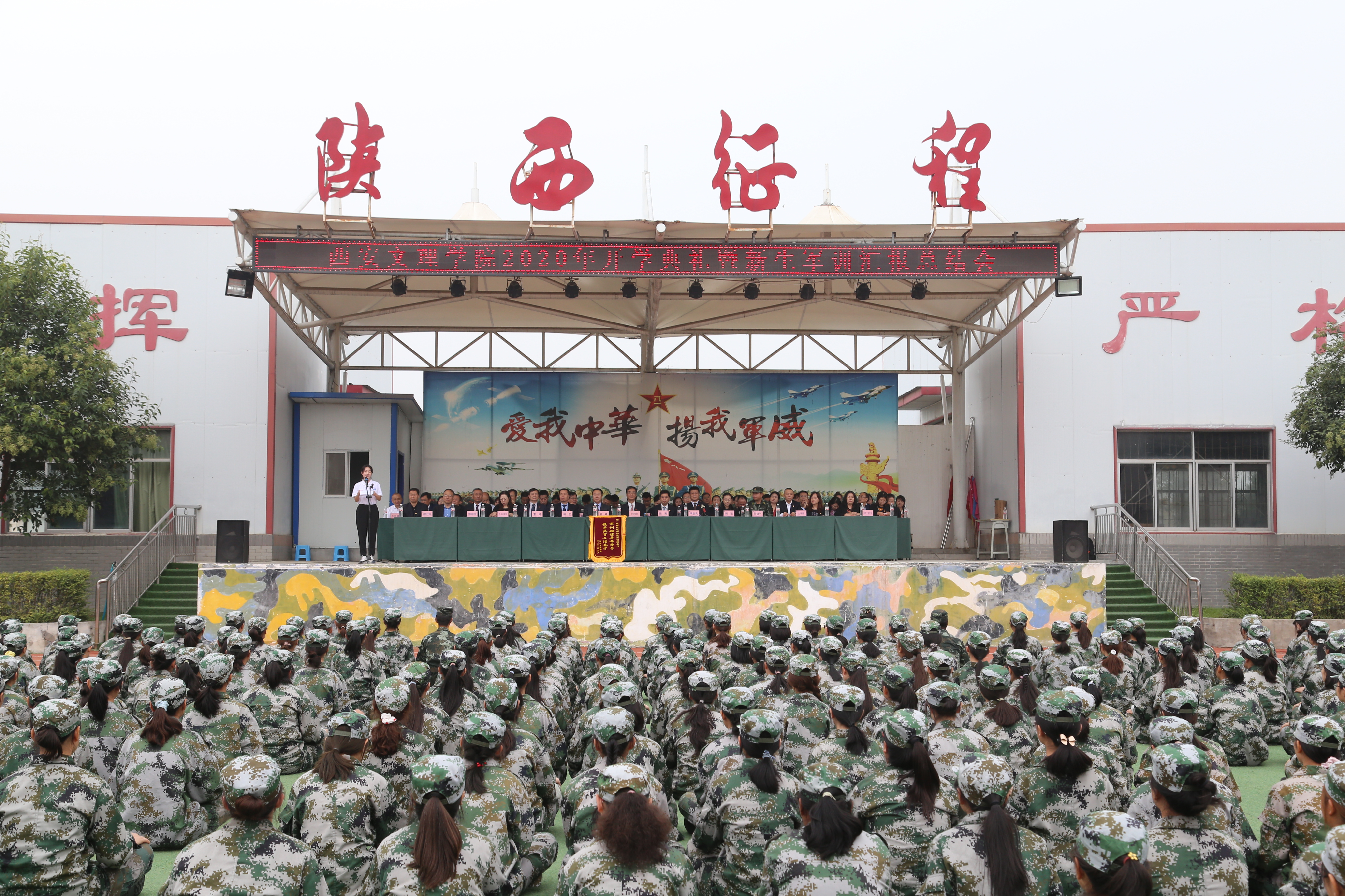 9月30日下午,学校在陕西征程国防教育训练基地举行2020年开学典礼暨新生军训汇报总结会。党委书记问向荣、校长陈刚、党委副书记、副校长李忠良,副校长韩权、校务委员郭瑞、校务委员曹鸿以及军训基地负责同志,校内各职能部门负责人,二级学院负责人在主席台就坐。大会由李忠良主持。
