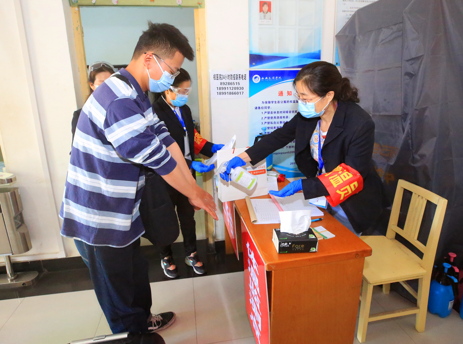 前期,为提高防疫实战能力,学校组织了两次返校复学防疫工作演练。各部门、各学院以高度负责的态度细化返校工作方案与流程,认真统计学生信息,精准排查返校过程中存在的风险点,为学生返校做足准备。