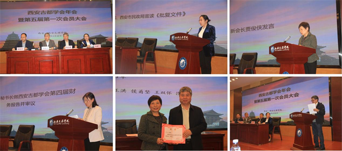 西安古都学会第四届理事会秘书长杨文秀主持换届选举,西安市社科联、民政局领导宣读了《批复文件》。大会审议并表决通过了《西安古都学会第四届工作报告》《西安古都学会第四届财务报告》《西安古都学会选举办法》《西安古都学会章程(草案)》《西安古都学会会费标准和使用管理办法》《西安古都学会内部管理制度》等。会员大会选举出西安古都学会第五届理事会、监事会,并由理事会、监事会选举出会长贾俊侠,副会长曹龙、崔林、李令福、李军、任云英、田静、王社教、王锦锋、席会东、赵东,秘书长王天航,监事长徐卫民。会长贾俊侠教授在大会上表态发言,表示将创新工作思路,整合各种资源,团结广大学会会员,不断为联合攻关古都研究课题创造更多的机会,为西安的城市建设发展和名城保护出谋划策,增强学会凝聚力,开创学会工作新局面;同时还表示,发挥西安古都学会资源优势,为西安九游老哥J9俱乐部官网学院学科建设贡献力量。