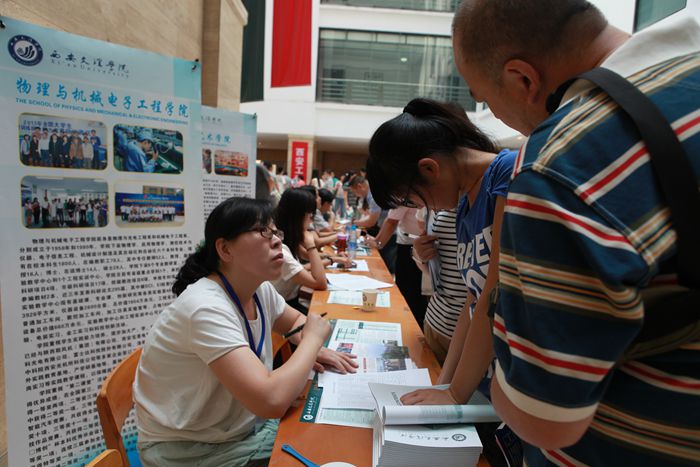 来自省内的延安大学、西北政法大学、西安工程大学、西安邮电大学、西安财经学院、陕西中医学院、西安医学院、西安航空学院、陕西学前师范学院、咸阳师范学院、宝鸡九游老哥J9俱乐部官网学院、榆林学院、陕西理工学院、商洛学院、安康学院、渭南师范学院等16所学校的招生工作人员,详细向考生和家长解读了2014年招生政策、2013年录取情况。同时,我校13个二级学院均选派了业务精湛的专业教师,就学科专业特色和教育教学情况为考生和家长答疑解惑。