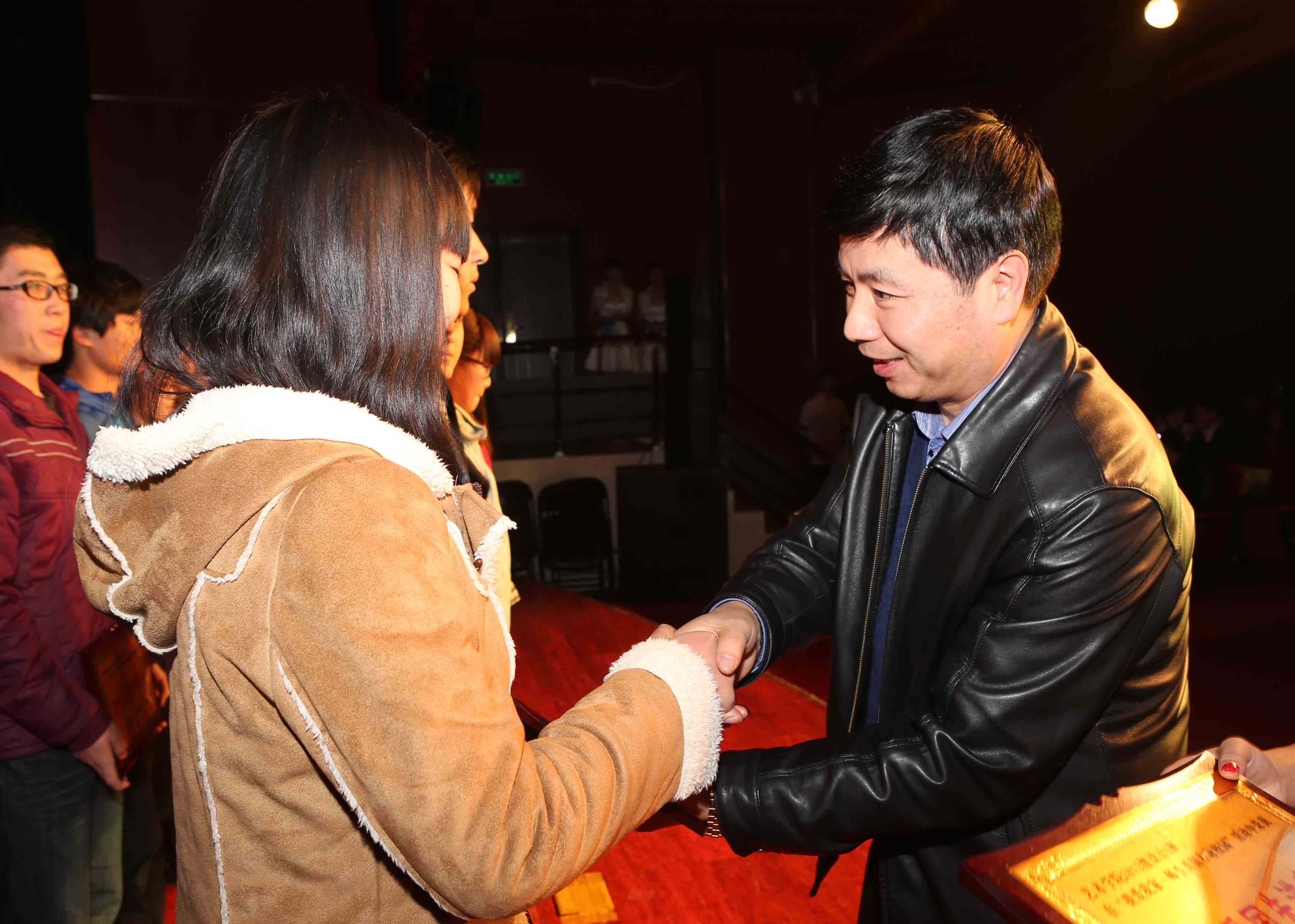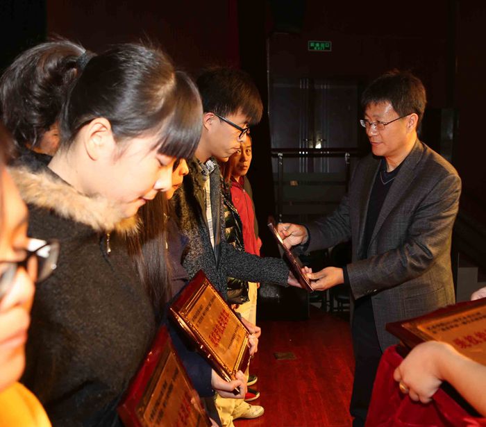 获奖的先进集体和优秀个人先后上台接受表彰。校领导为获奖者颁发了证书、奖牌,并与他们合影留言。