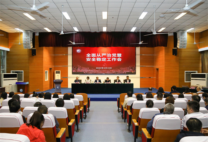 4月10日下午,学校在明德楼A区报告厅召开2024年全面从严治党暨安全稳定工作会。校党委书记王育选出席并讲话,校长陈刚主持会议。会议传达学习了2024年全省教育系统全面从严治党工作会议精神,全面总结学校2023年全面从严治党及安全稳定工作,并就2024年重点工作进行安排部署。