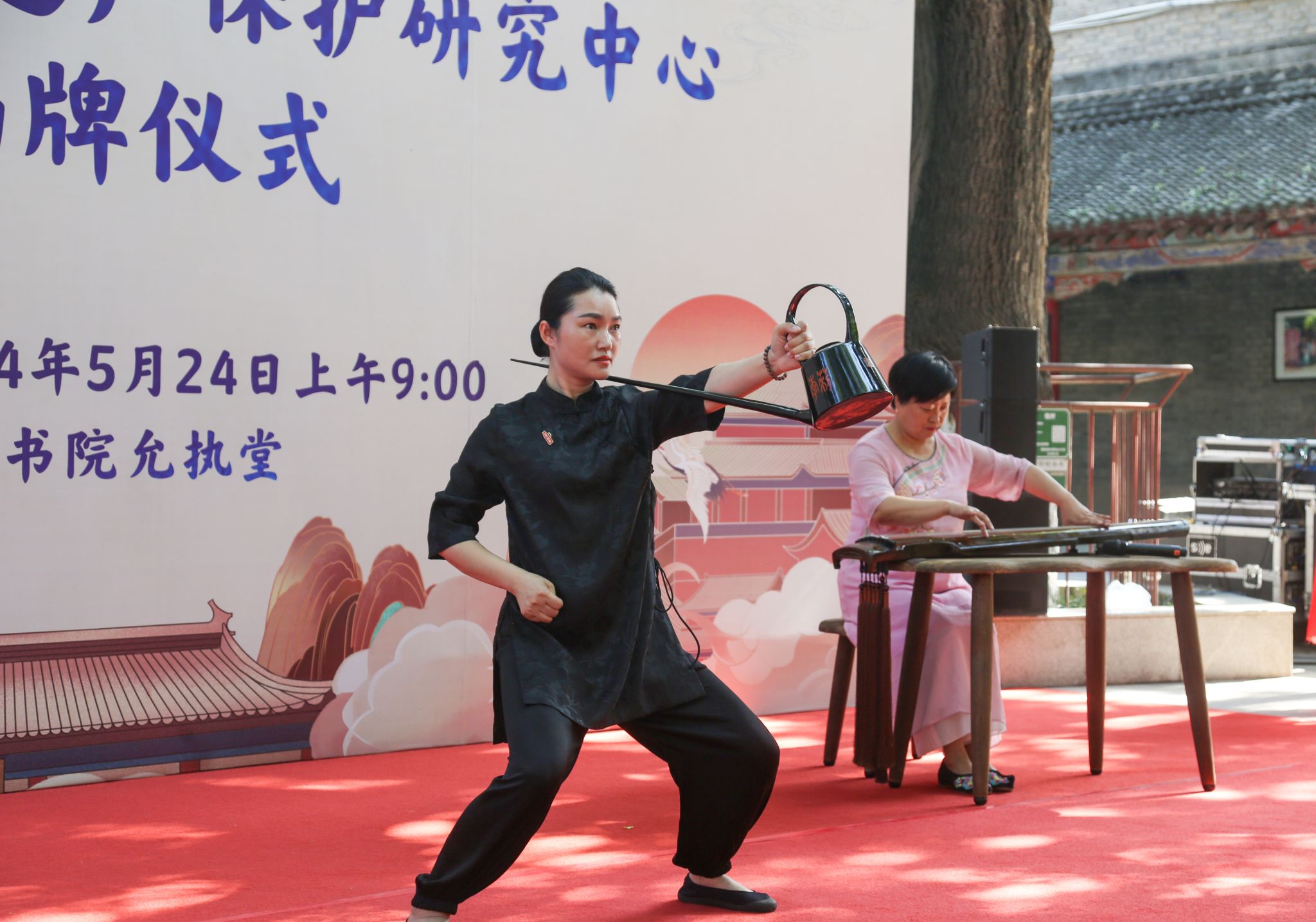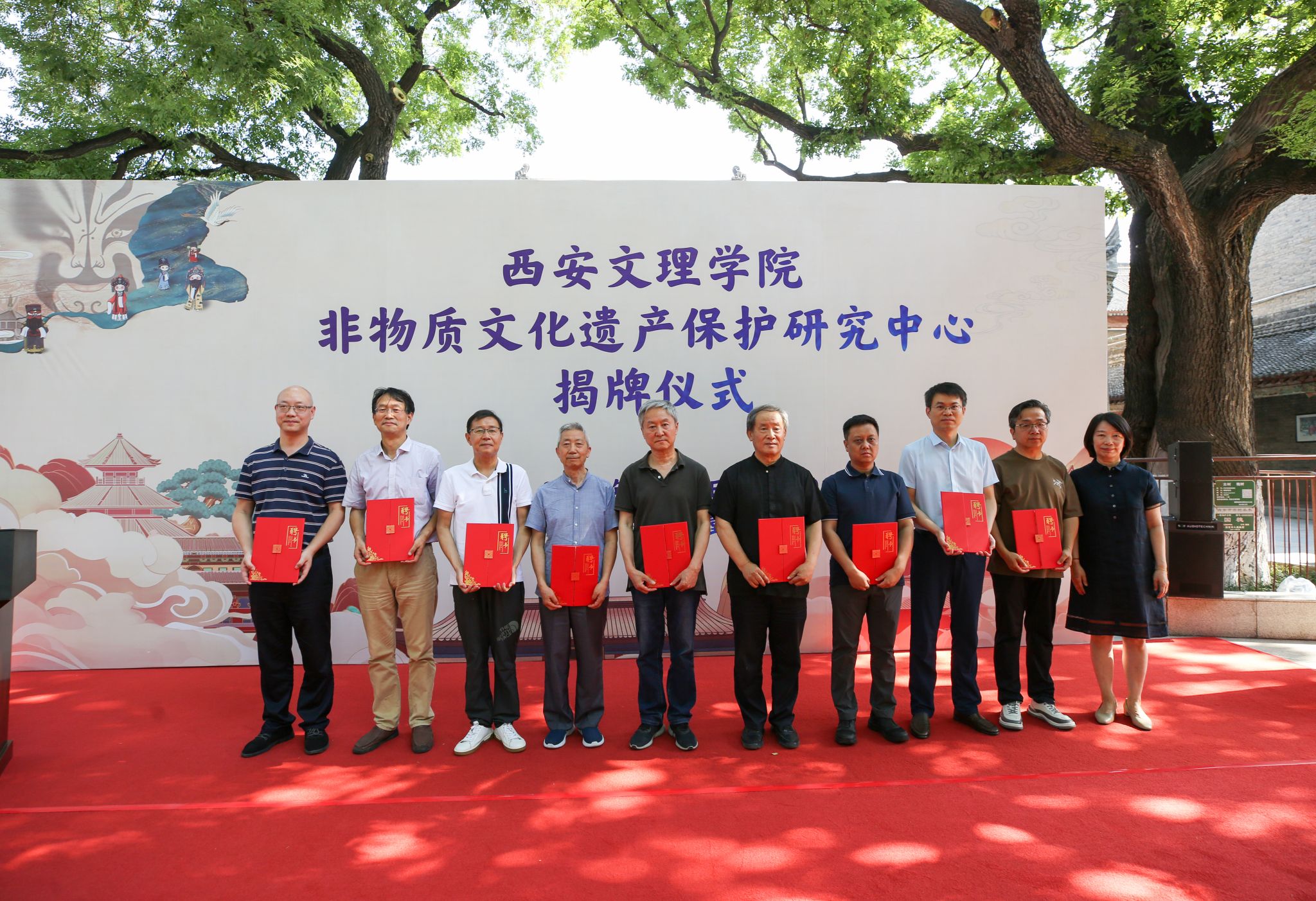省文旅厅非遗处处长赵艳、市文旅局副局长程锐,西安市十三个区县文化旅游有关领导,我校有关部门和学院领导、教师和学生代表120余人参加揭牌仪式。揭牌仪式还穿插进行了古琴、茶艺等非遗表演。