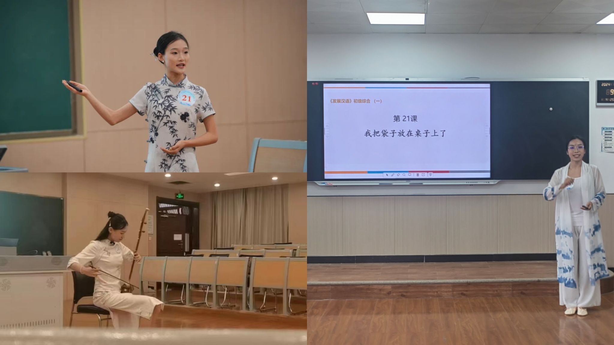 本次比赛设置了说课、试讲、中英文问答、中华才艺展示等环节,综合考察选手国际中文教学、外语水平、跨文化交际和中华才艺等方面素养。决赛现场邀请了北京语言大学、华东师范大学、中山大学、暨南大学、上海外国语大学、辽宁师范大学等高校国际中文教育领域多位专家担任评委。