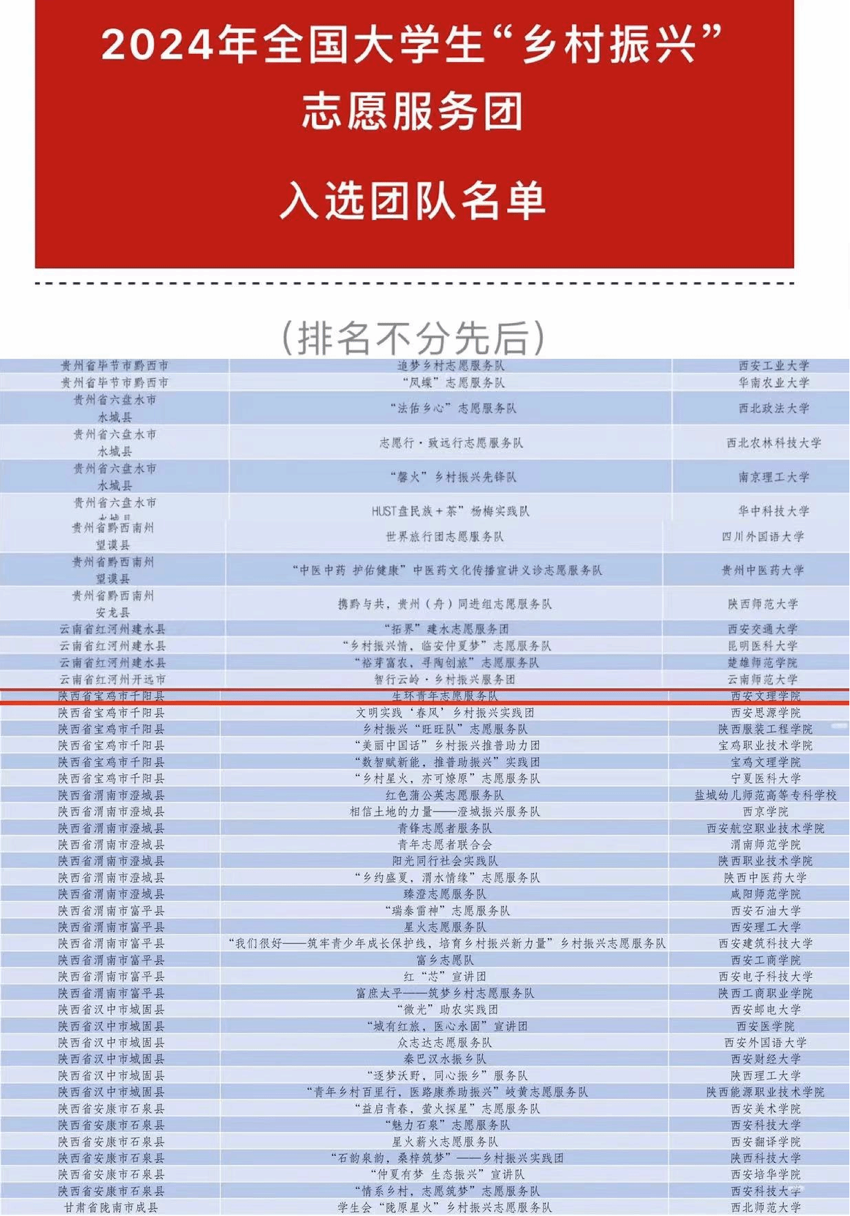 近日,中国农业发展银行、团中央青年志愿者行动指导中心联合发布了《关于遴选2024年全国大学生“乡村振兴”志愿服务团的公告》,生物与环境工程学院“生环青年志愿服务队”与西安交通大学、陕西师范大学等全国748所高校的1000支大学生志愿者服务团队成功入选。