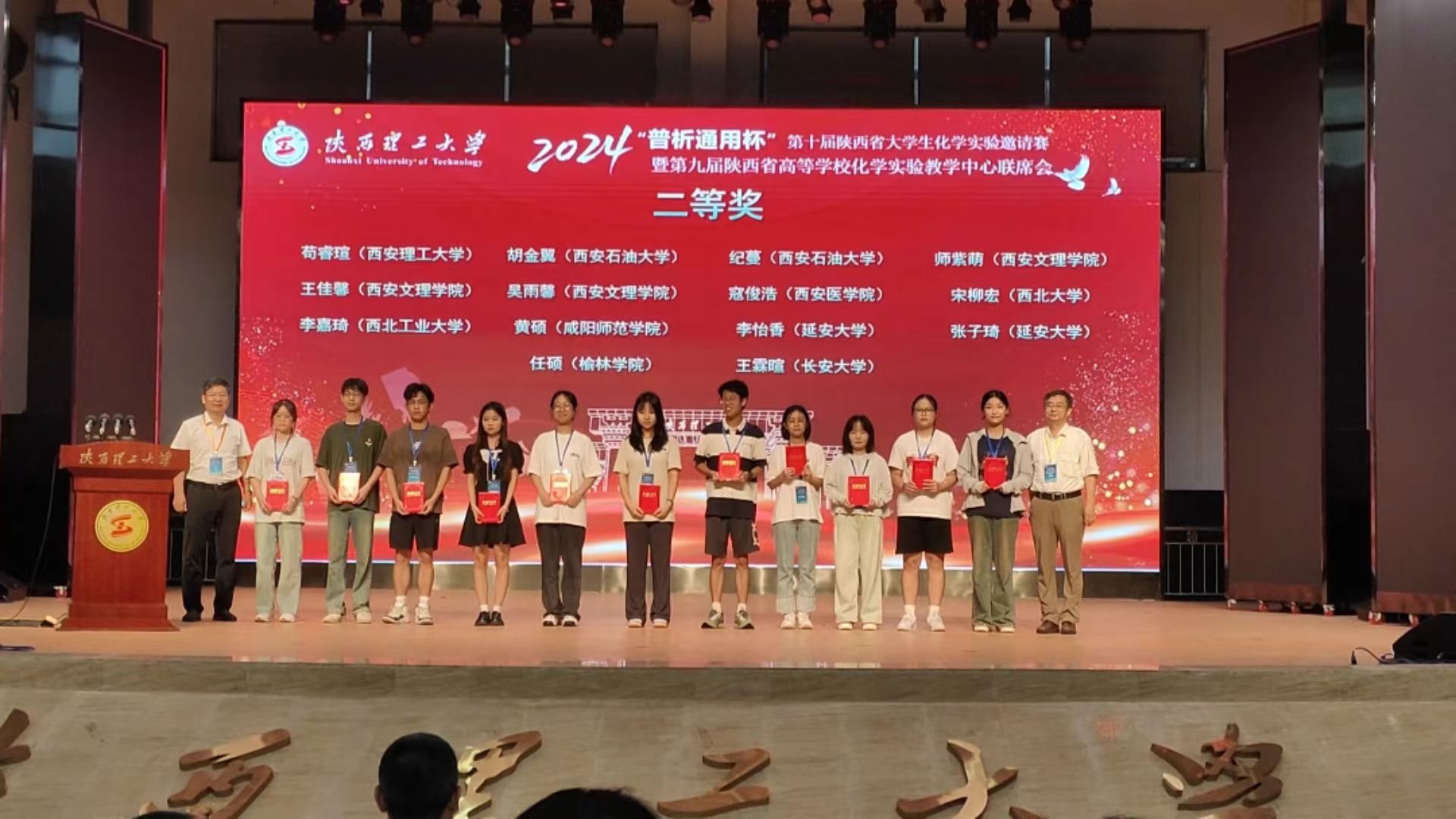 7月12-14日,“普析通用杯”第十届陕西省大学生化学实验邀请赛在陕西理工大学举行,经过激烈的角逐,学院吴雨馨、王佳馨、师紫萌三位同学荣获二等奖,王俊奇同学荣获三等奖。