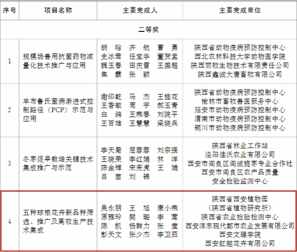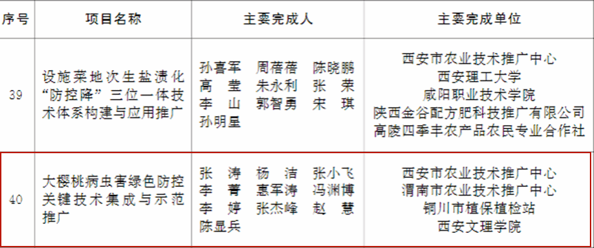 近日,陕西省人民政府发布了《陕西省人民政府关于表彰全省农业技术推广成果奖的通报》,我校生物与环境工程学院生物科学专业李莺教授参与的农业技术成果《五种球根花卉新品种筛选、推广及高效生产技术集成》荣获二等奖,环境生态工程专业李菁副教授参与的《大樱桃病虫害绿色防控关键技术集成与示范推广》成果荣获三等奖。陕西省农业技术推广成果奖是全省农业领域科研推广工作最高层次的奖项,旨在奖励在推进农业农村科技创新与推广应用中作出重要贡献、取得突出成绩的农业科技单位和人员,我校教师首次在该领域获奖。