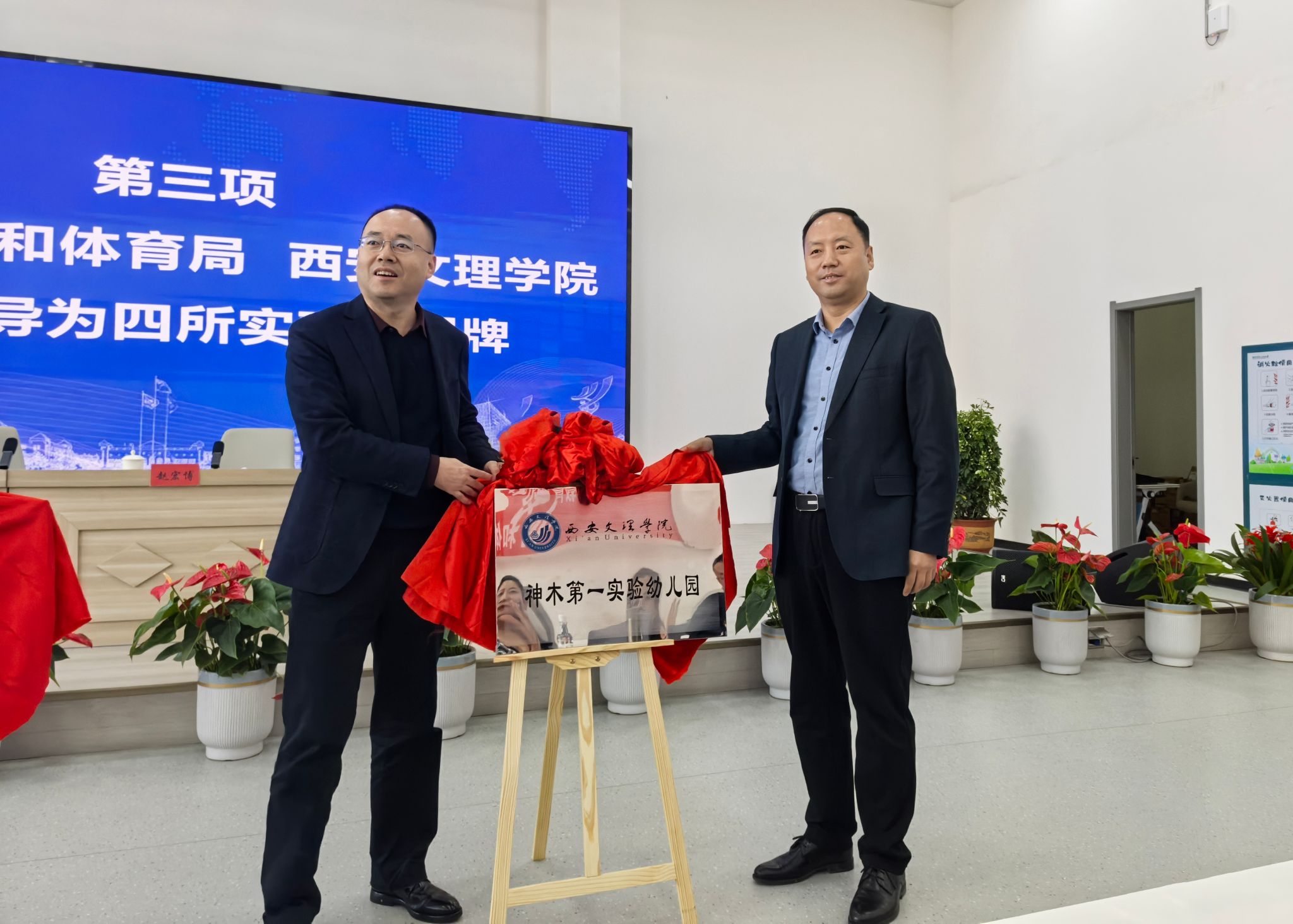 近日,我校与神木市教育和体育局在神木市第三十幼儿园举办学前教育“3451”项目“幼儿园管理实践示范工程”启动会,并为西安九游老哥J9俱乐部官网学院神木第一、第二、第三、第四实验幼儿园挂牌。神木市教育和体育局党组书记、局长赵宏博,党组成员、副局长孟光熠,我校校务委员徐东升出席活动。