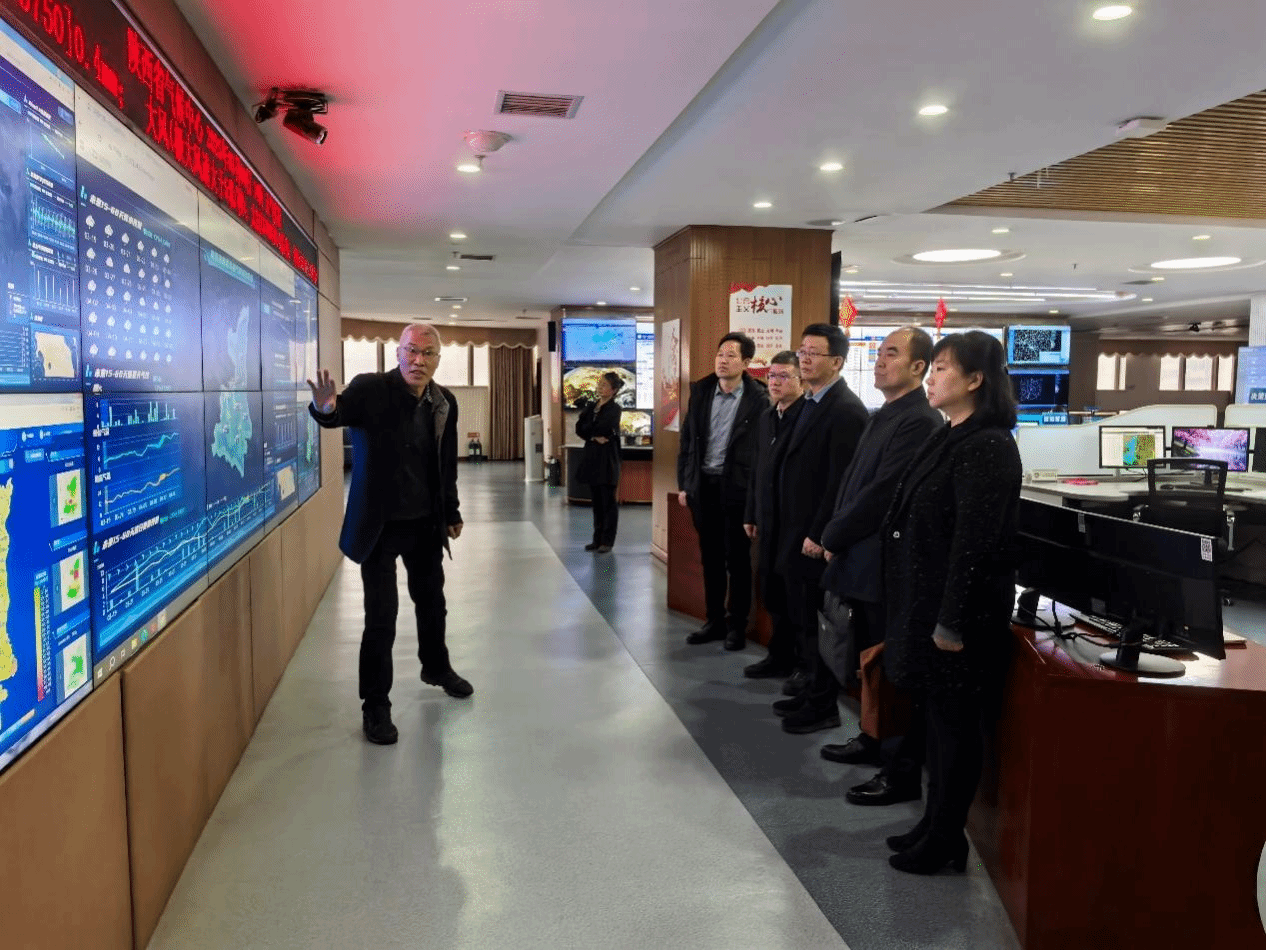 龚杰昌一行在省气象局总工程师杨文峰等陪同下,先后参观了省气象服务中心、预警中心、气象台、气候中心、信息中心、大气探测技术保障中心等业务单位。各业务部门负责人结合实时业务系统,详细介绍了气象监测预警、气候分析、数据共享、技术保障等领域的创新成果与应用实践。通过实地参观,我校深入了解了气象现代化建设的核心技术与服务能力,为后续学科交叉研究提供了实践参考。