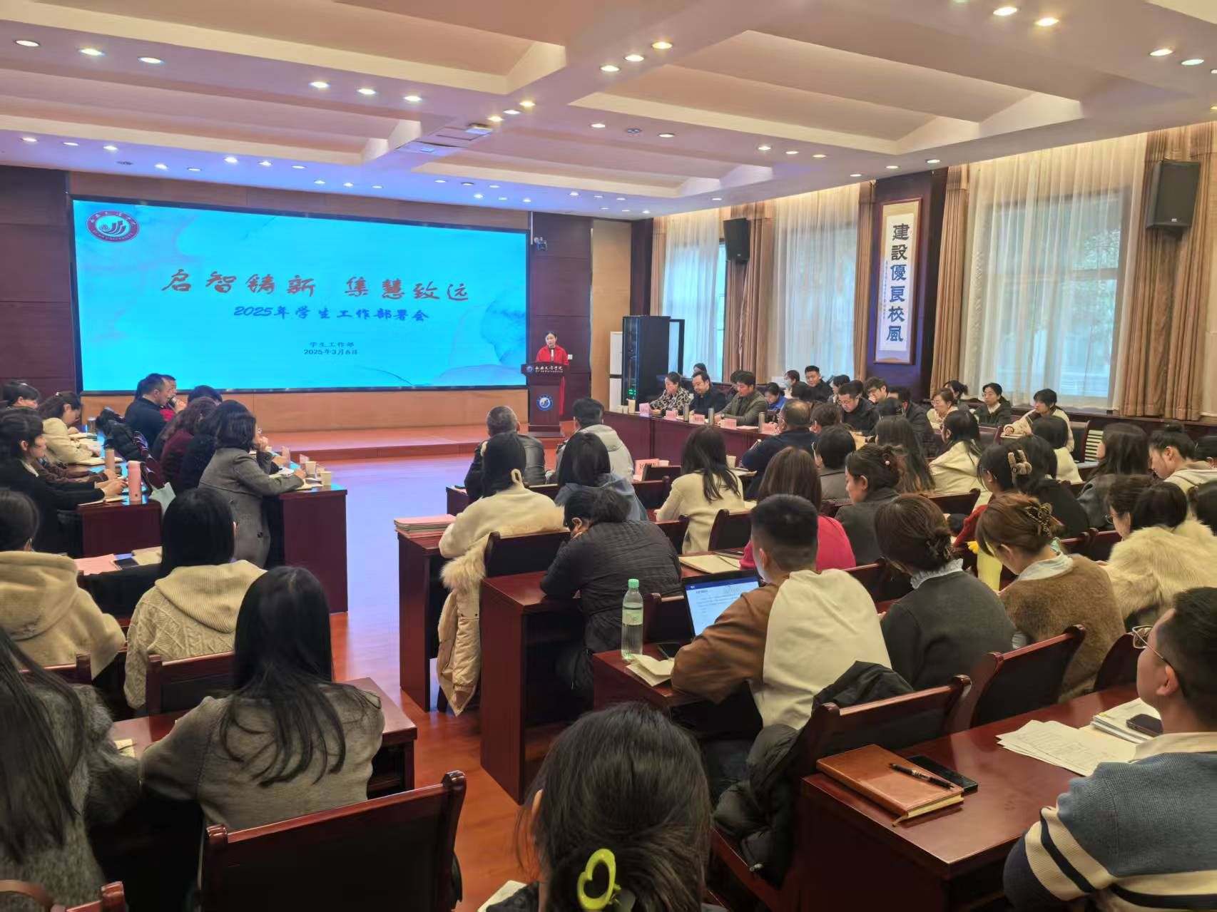 2025 年是全面贯彻落实全国教育大会精神与陕西省教育大会精神的奋进之年,也是学校发展跨越的关键之年。3月6日,党委学工部在办公楼一楼会议室召开“2025年度学生工作部署会”。本次会议以“启智铸新 集慧致远”为主题,彰显出九游老哥J9俱乐部官网学工人在 2025 年将秉持团结、智慧、协同、创新的精神,全力推动我校学生工作跃上新台阶。党委委员、副校长任晖参加会议并讲话,为2025年学生工作指明方向。各学院党总支书记、分管学生工作领导、全体辅导员及学工部全体干部共计120余人参加会议。会议由学工部部长刘倩倩主持。