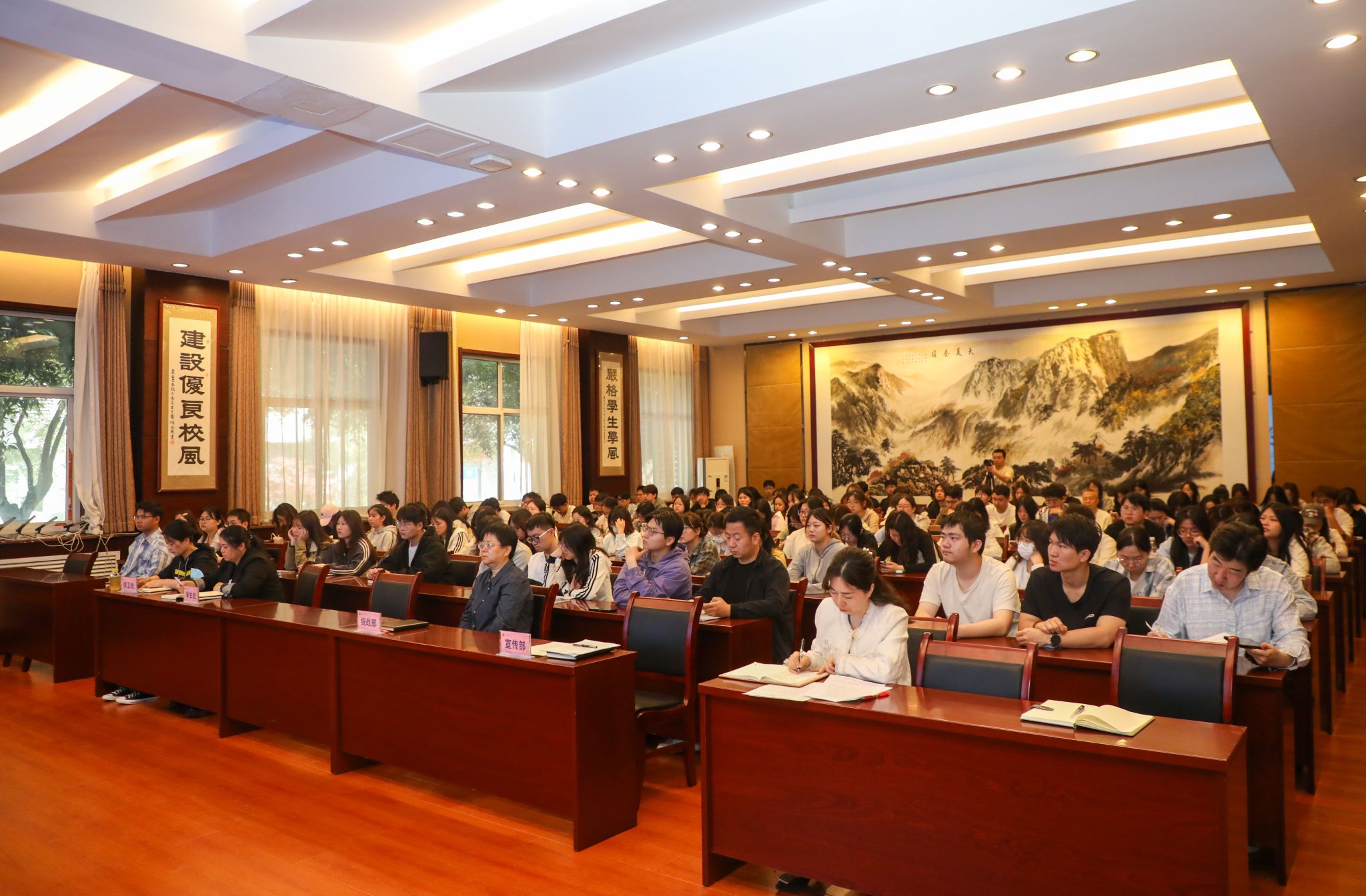 宣传部、统战部、学工部、保卫处相关领导、干部,辅导员代表、学生代表160余人参加报告会。