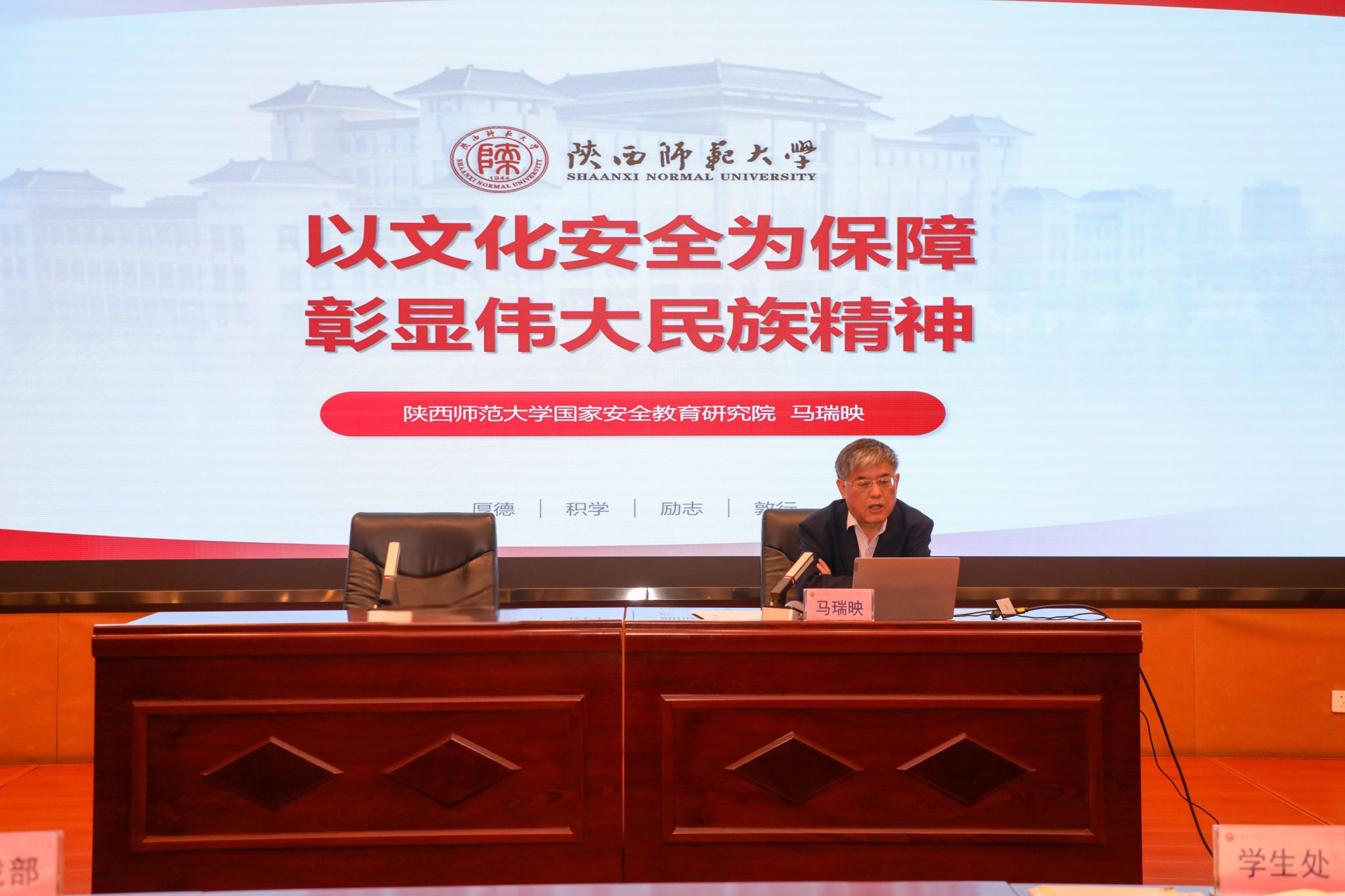 4月14日上午,西安市2025年“国家安全大讲堂”送学活动走进我校,西安市国家安全智库专家、陕西师范大学国家安全教育研究院院长马瑞映教授为师生做专题辅导报告。