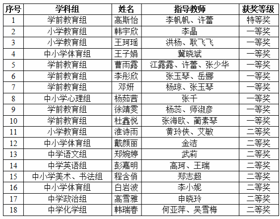 近日,陕西省教育厅公布了第四届高等学校师范生教育教学能力大赛获奖名单,我校18名师范生参赛并斩获佳绩,共获特等奖1项、一等奖9项、二等奖8项。大赛分设校级初赛、省级复赛与决赛三个阶段,覆盖中小幼全学段16个学科,全省16所高校181名选手晋级决赛。