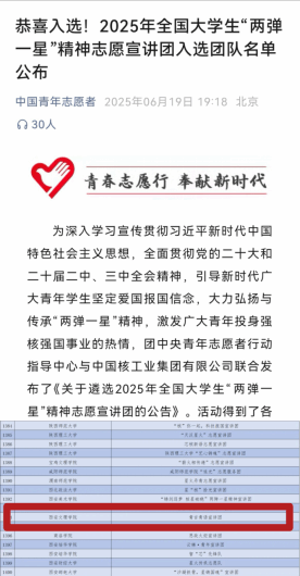 机械与材料工程学院大学生青言青语宣讲团入选团中央2025年全国大学生“两弹一星”精神志愿宣讲团
