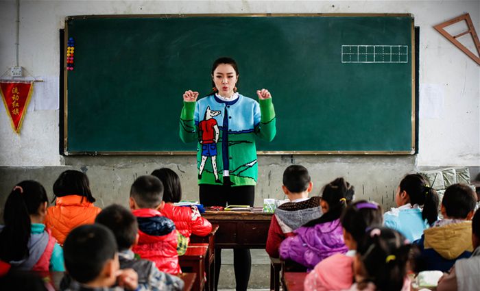 余薇薇给孩子们上课