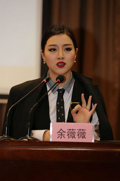 报告中,余薇薇回忆了自己在校期间丰富多彩的校园生活。特别感谢老师的精心教导,及母校给予她成长的基石。她说:“母校就像温暖的家,老师就像妈妈一样”。余薇薇除了努力学习专业课,同时还抽时间练习跆拳道、击剑、书法、绘画,周末还会去做平面模特。扎实的专业基础,广泛的兴趣爱好,为余薇薇的后续发展奠定了的坚实基础,而模特实践活动的参与经历,让薇薇积累了丰富的舞台经验,对她走上世界小姐的道路起到了助推的作用。她告诉学弟学妹,一定要珍惜大学时光,学好专业课,培养广泛兴趣,为实现梦想奠定坚实的基础。