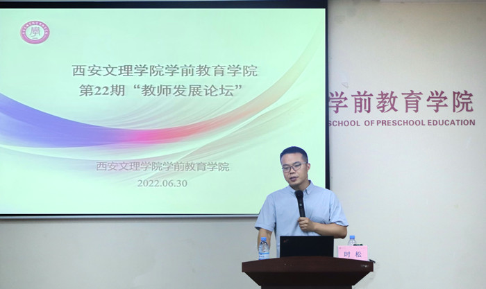 6月30日上午,学前教育学院举办了第二十二期“教师发展论坛”,邀请到南通大学教育科学学院时松副教授作了题为“从“云朵”到“大地”——幼儿园生成课程行动研究”的学术报告。活动由科研副院长赵四鸿主持,学院50余...