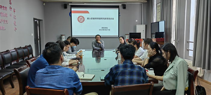 8月31日下午,师范学院在明德楼召开新入职教师师德师风教育培训会。学院12名新入职教师参会,党总支书记武军安、组织员兼党总支副书记姚君波出席并讲话。 武军安、姚君波分别就召开此次培训会的主旨与意义做了深入讲...