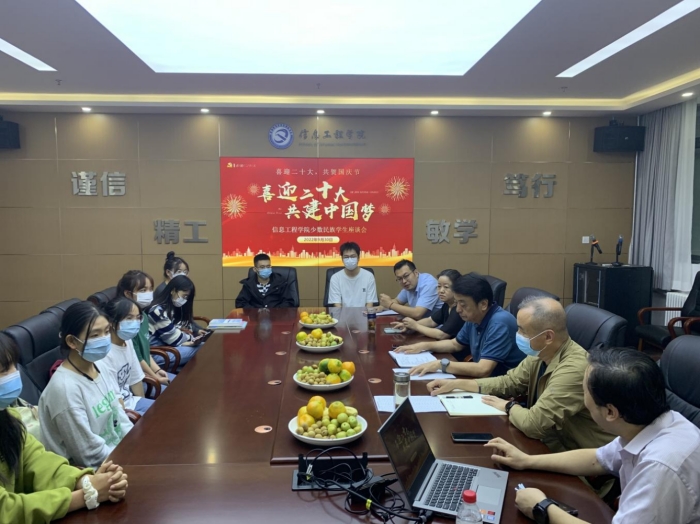 9月30日,信息工程学院召开“喜迎二十大,共建中国梦”少数民族座谈会。学院党总支书记李昉,院长杨渭清,组织员巩建平,统战委员、副院长张力宁,党总支副书记李承,学工办主任陈贵霞、副主任秦玮,在校的少数民族学...
