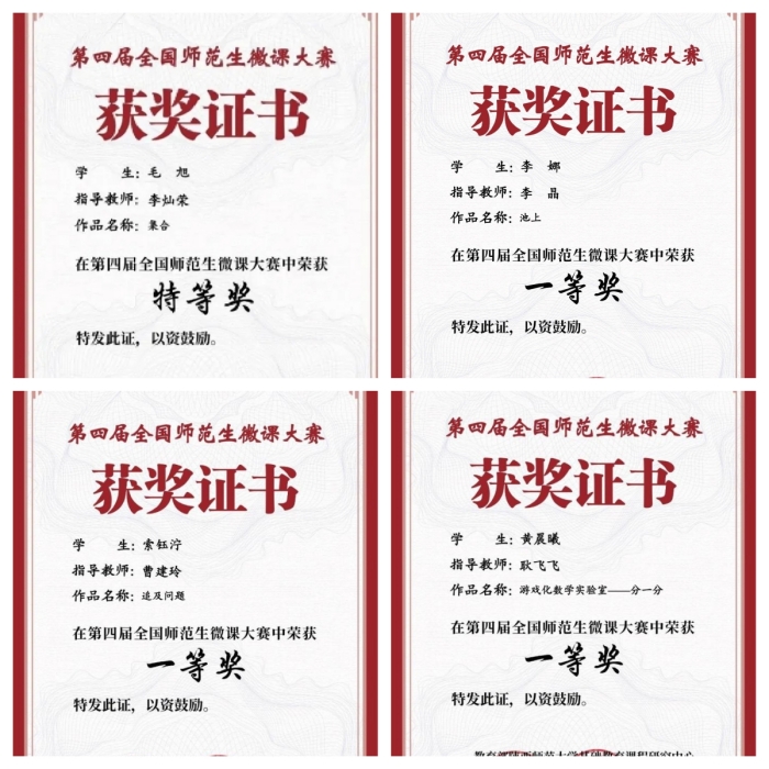 第四届全国师范生微课大赛近日落下帷幕,我校信息工程学院数学与应用数学专业学生党攀的作品《认识无理数》,在于鸿丽教授悉心指导下,经过层层选拔,喜获特等奖,于鸿丽被评为优秀指导教师,学生李妍的作品《探索勾...