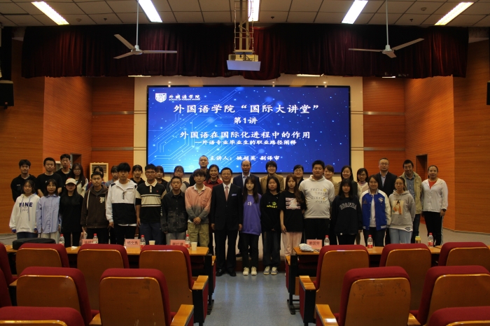 4月26日下午,应外国语学院邀请,陕西省商务厅原党组书记、厅长姚超英以 “外国语在国际化进程中的作用---外语专业毕业生的职业路径阐释”为题,在明德楼A区报告厅为我校师生做“国际大讲堂”首场讲座。约三百余名师...