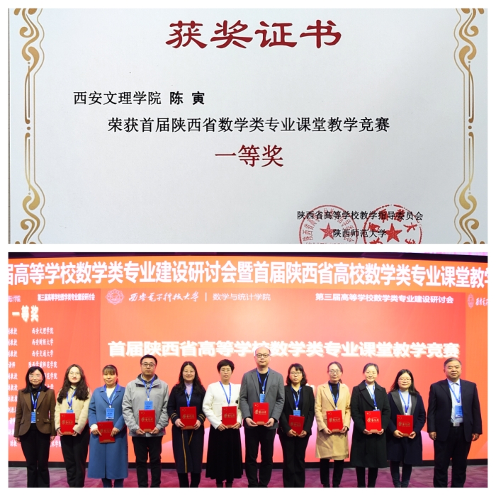 11月18日,第三届高等学校数学类专业建设研讨会暨首届陕西省高等学校数学类专业课堂教学竞赛颁奖仪式在西安电子科技大学举行。我校信息工程学院青年教师陈寅在此次竞赛中获得一等奖。 首届陕西省数学类专业课堂教...