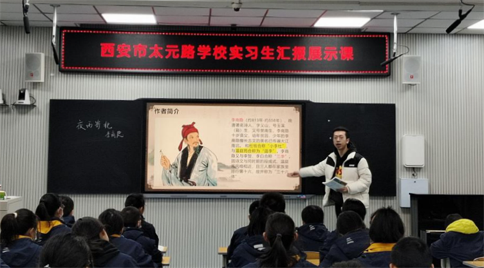 12月1日,文学院汉语言文学专业组织学生赴西安市太元路学校实习点开展师范生教学观摩活动,中文系主任于展东组织、副主任李冰清、实习点指导老师彭冠华及专业教师吕慧静带队,2021级学生观摩学习。 展示课程分别...