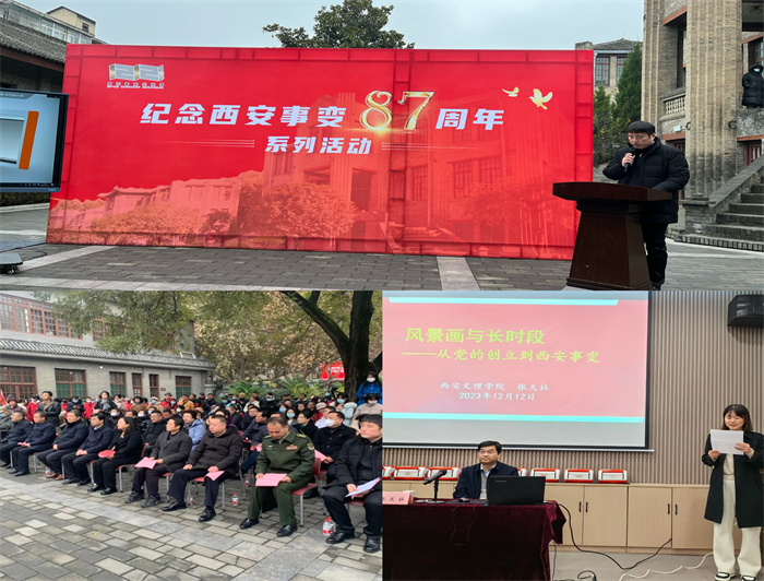 12月12日,西安事变纪念馆举行纪念西安事变87周年系列活动,我校关中书院院长张天社应邀参加并作主题报告。 纪念活动由西安事变纪念馆副馆长马遥组织实施。纪念馆与碑林区、中国人民解放军陆军边海防学院签订了共...