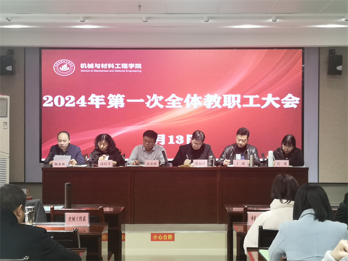 3月13日,机械与材料工程学院在实训楼S204会议室召开2024年第一次教职工大会。学院领导班子、全体教职工参加了大会,会议由党总支书记武文斌主持。 会上,学院领导分别就各自分管工作做了具体安排。杨森林传达了...