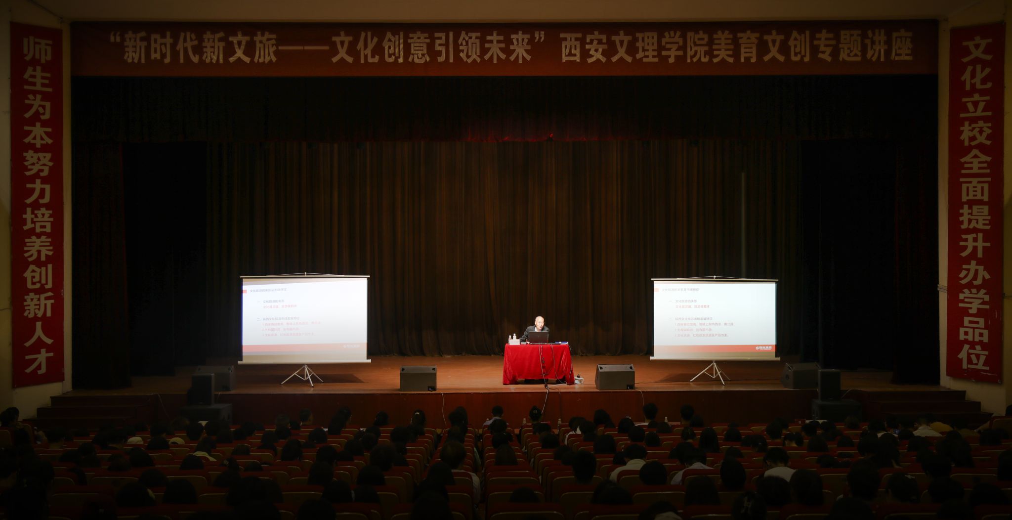 4月24日晚,美术与设计学院邀请陕旅集团副总经理王汉琳在学校大礼堂开展“陕西文旅新时代新文旅——文化创意引领未来”美育文创讲座。陕西旅游集团有限公司副总经理王汉琳从文旅视角出发,结合陕旅集团实践案例为全校师生带来一场文创与美育方向的讲座。陕西白鹿原旅游文化发展有限公司(白鹿原影视城)副总经理仇瑾,陕旅集团战略投资部副部长郭磊,美术与设计学院副院长陈晓璐,学工办主任周薇、文化创意产品研发中心主任齐铭怡、...