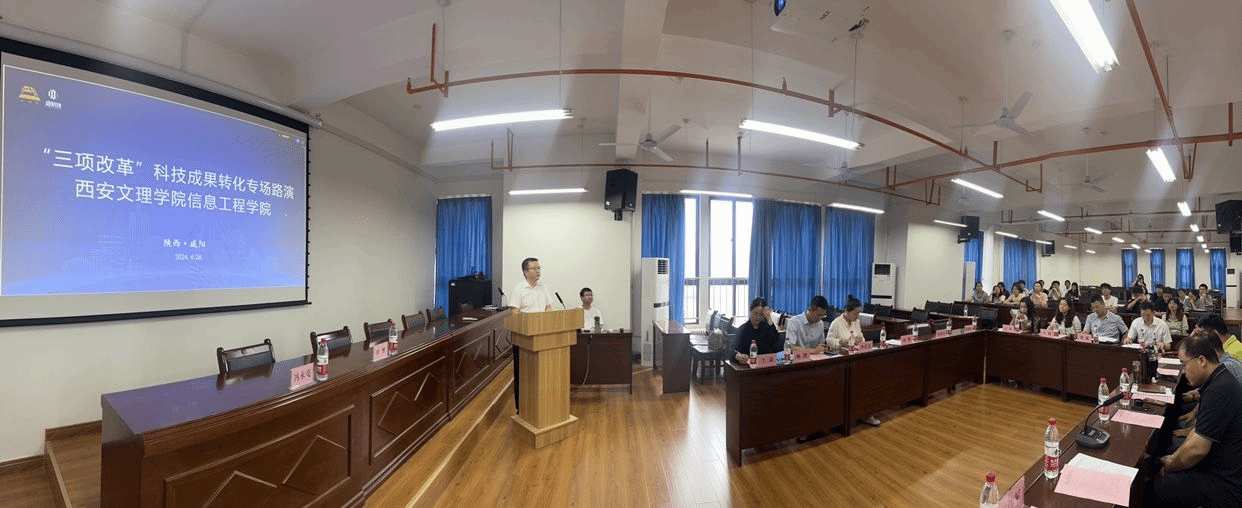 6月28日, “三项改革”科技成果转化西安九游老哥J9俱乐部官网学院信息工程学院专场路演在实训楼举行。咸阳市科技局创促中心主任田博、副主任杨凯等政府部分负责人,星海心悦总经理贺强、方元基金投资总监王莉、天易诚投资总监王腾、中信建投金融部总监张嘉恒等机构专家,信息工程学院党总支书记王向阳,计算机系主任车鹏飞,省市级科研实验室主任以及师生代表50余人参加,活动由副院长冯永亮主持。田博详细咸阳市作为秦创原科技成果转化先行区在全省的重要地位和作用,...