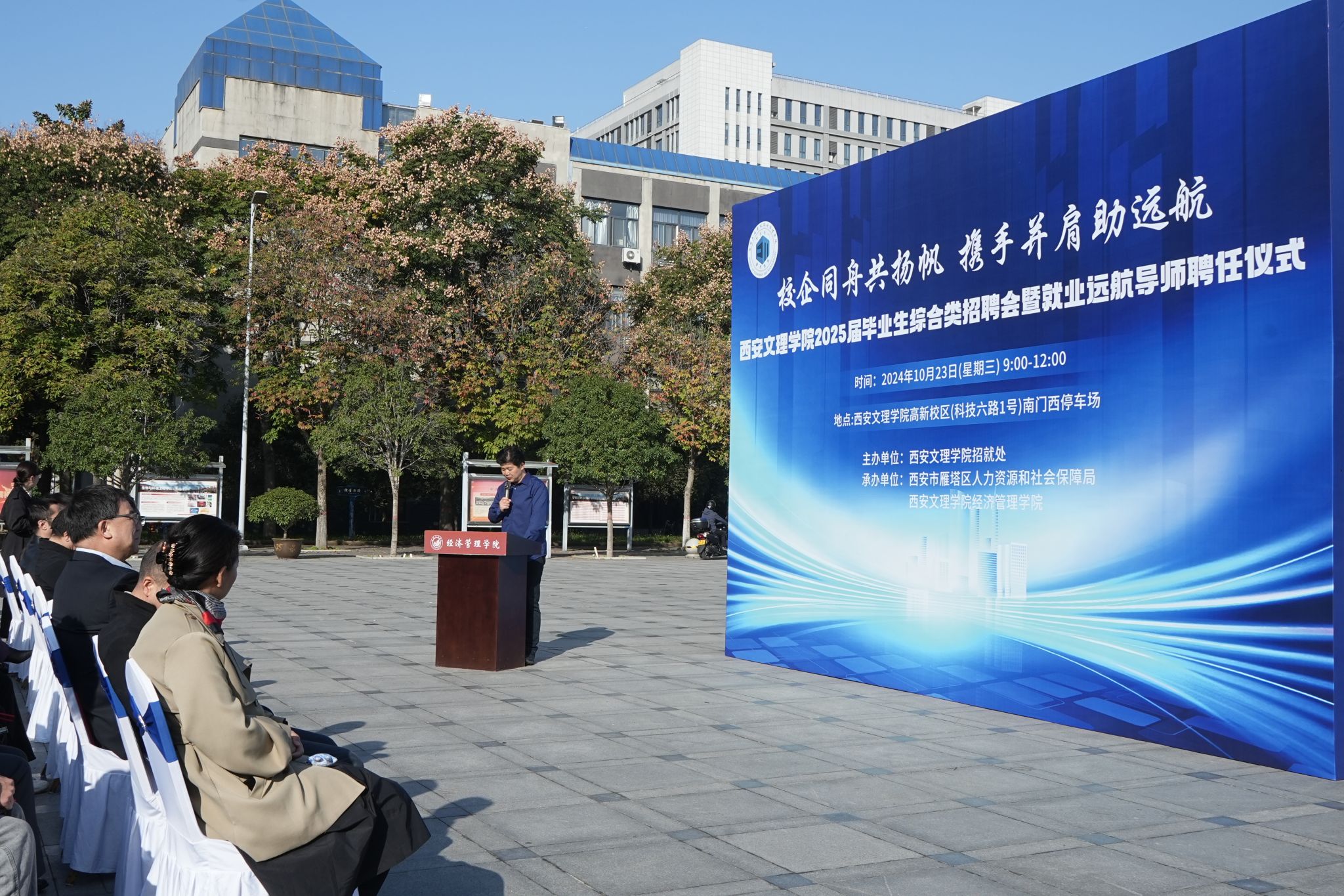 为进一步落实学校“七个五”帮扶就业工作举措,积极搭建人才共育、课程建设、专业实践、实习就业等校企共建、共育、共赢合作平台,10月23日上午,经济管理学院举办2025届毕业生综合类招聘会暨就业远航导师聘任仪式。本场校园招聘会由招生就业处主办,西安市雁塔区人力资源和社会保障局、经济管理学院承办。校党委书记王育选亲临招聘会现场,与经管师生亲切交流。校党委委员、副校长刘明利,我校相关职能部门负责人,中国农业银行钟楼支行等单位的17位企业领导嘉宾及学生代表参加活动。...