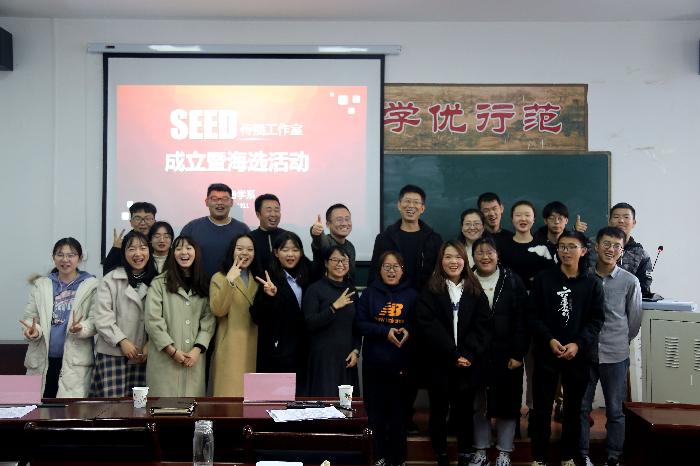 12月11日上午,文学院广告学系举行SEED传播工作室成立仪式暨海选活动。文学院院长郝延军、西安思度科技有限公司影视部技术总监,广告学系系主任郑玲玲、广告学专业教师李曜良、岳晨以及来自文学院2018级和2019级志愿...