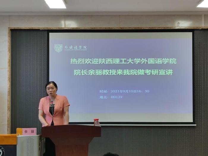 近日,外国语学院特邀陕西理工大学外国语学院院长余丽教授来院开展重点学科建设和申硕工作座谈会。院长韩红建教授、副院长杨红梅教授以及英语语言文学市级重点学科建设团队和申硕团队主要成员参加了座谈。 会上, 余...