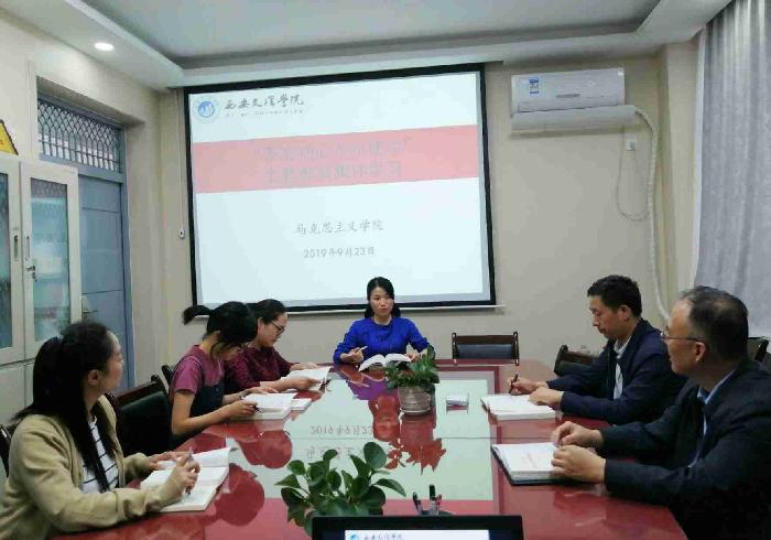 9月23日上午,马克思主义学院党总支召开集体学习研讨 “不忘初心、牢记使命”主题教育集体学习,学院领导班子成员、学工办及行政办主任参加了会议,会议由党总支书记薛斌主持。 贺文华副院长领读了《坚持深化教育改革...