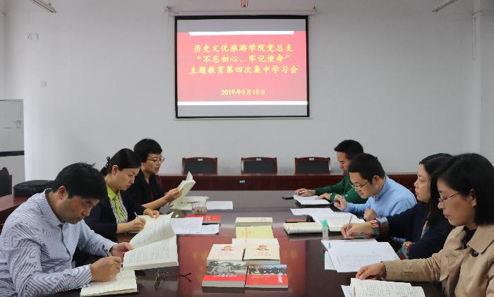 9月19日下午,历史文化旅游学院党总支召开第四次“不忘初心、牢记使命”主题教育集中学习会,重点学习《习近平关于“不忘初心、牢记使命”重要论述选编》、《中国共产党党内重要法规汇编》、《“不忘初心、牢记使命”...